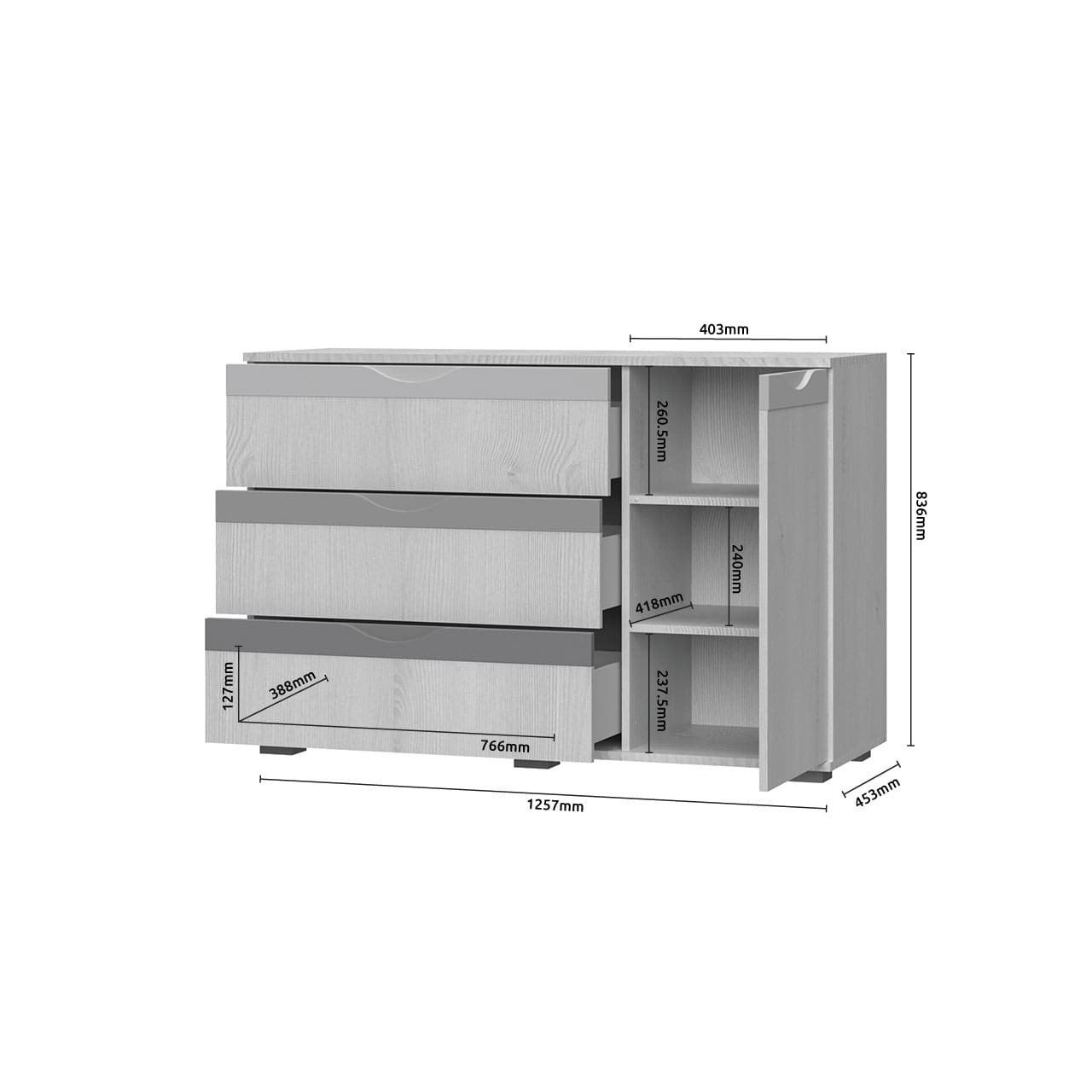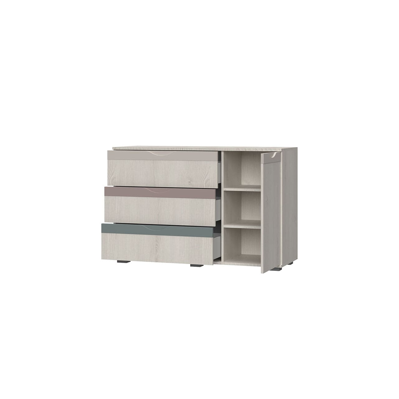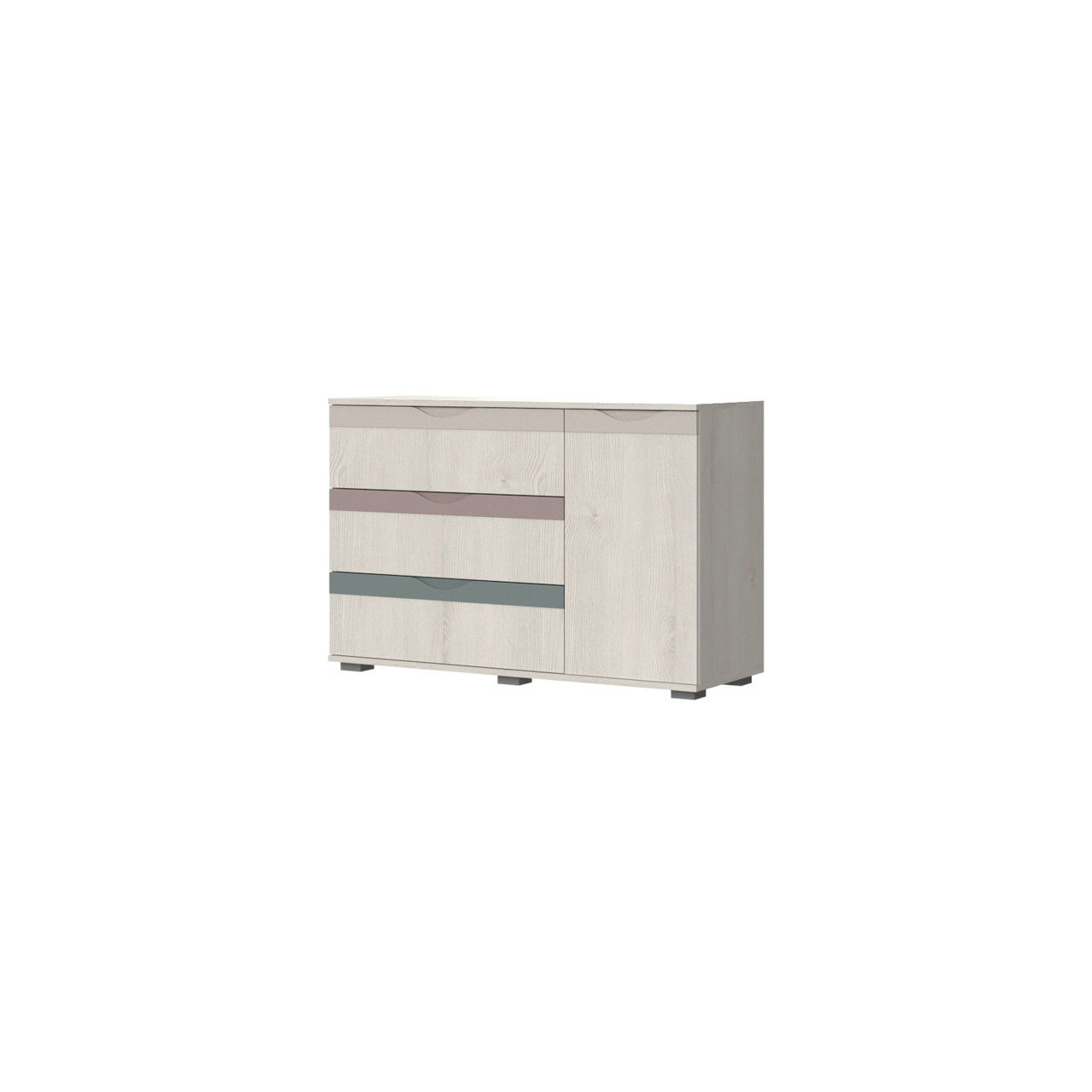 Komoda za dečiju sobu, iz kolekcije JOY, sa jednim krilom i tri fioke koje imaju dekorativne ručice od medijapana veselih boja