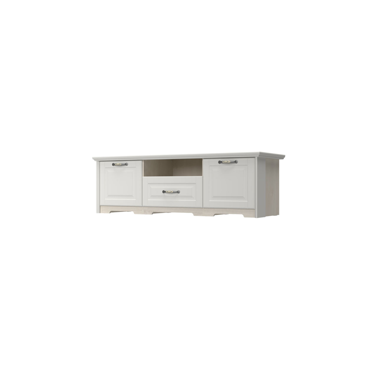 TV sto za dnevnu sobu, iz kolekcije EVERGREEN, sa dva krila, jednom fiokom i jednom otvorenom policom – element nameštaja za ljubitelje klasike.
