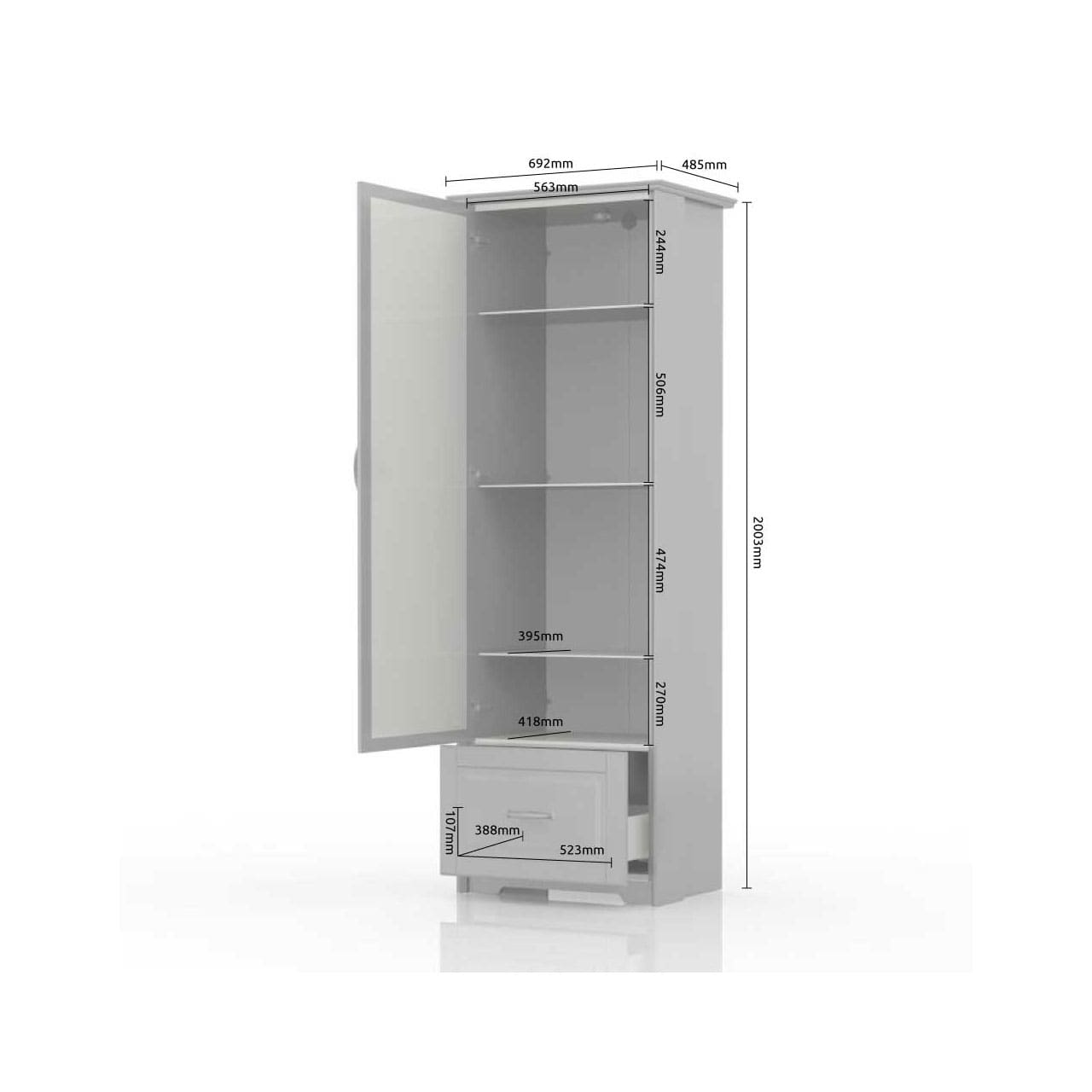 Vitrina za dnevnu sobu iz kolekcije EVERGREEN sa jednim staklenim krilom i fiokom, unosi dašak klasike i elegancije u vaš dom.