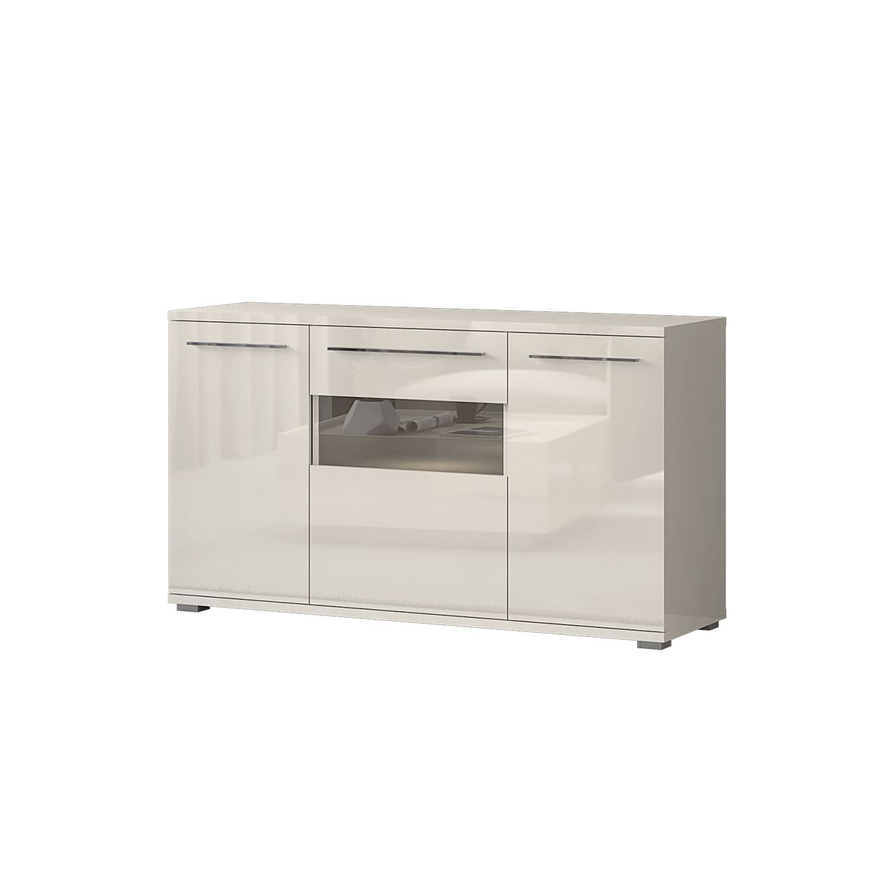 Bež lak / Bež Lak Funkcionalna komoda iz kolekcije nameštaja PIANO sa dva puna i jednim staklenim krilom, dizajnirane geometrijske forme.