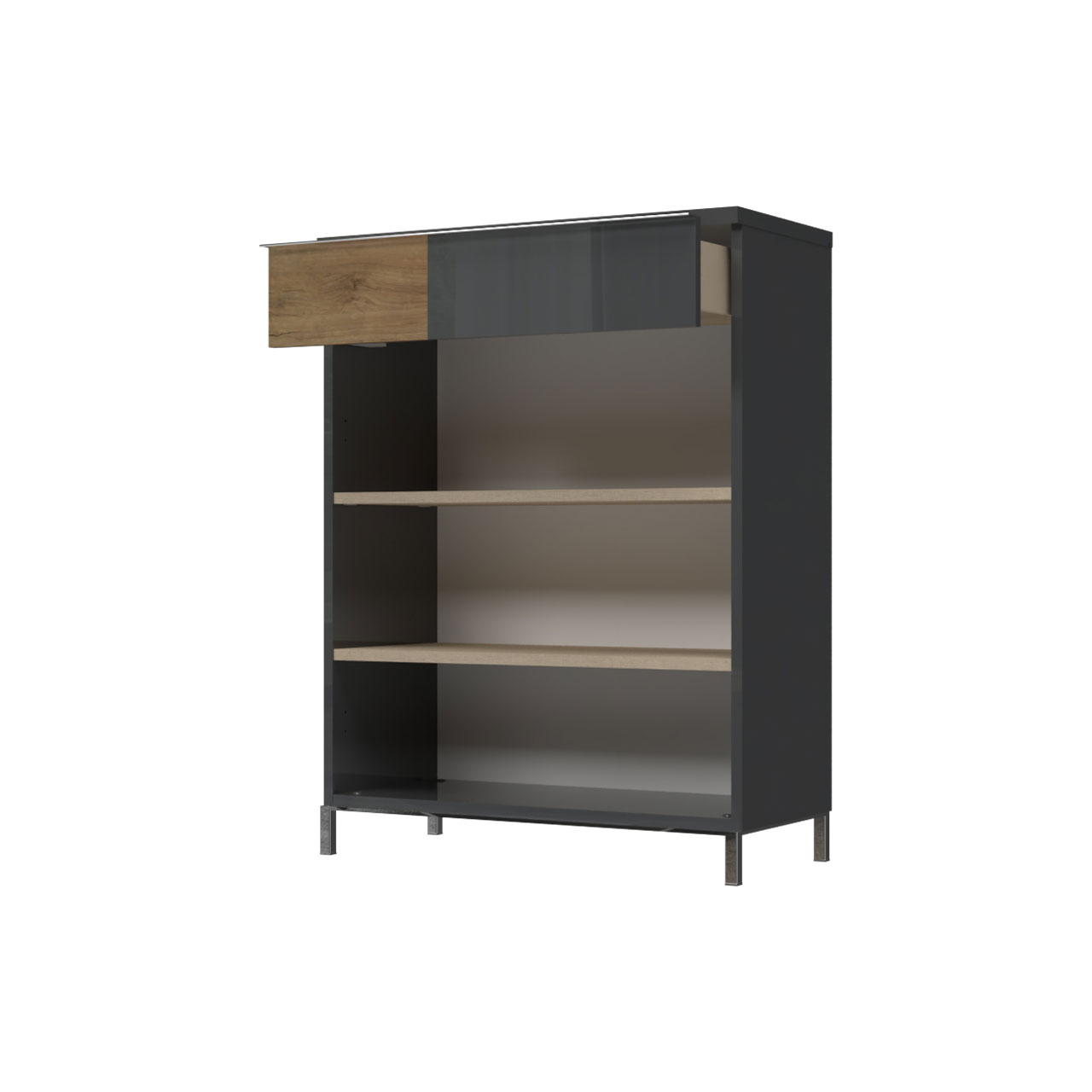 front fioke elementa u kombinaciji drvodekora Pacifik orah i Antracit boje, lakiran UV lakom u visokom sjaju;