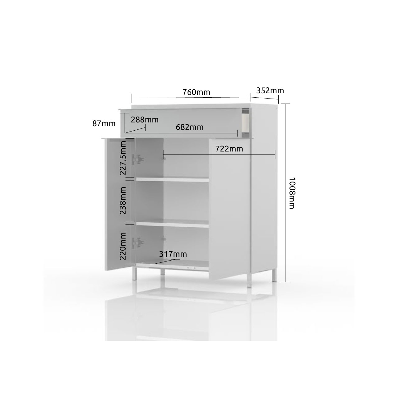 Cipelarnik sa dva krila i fiokom, modernog dizajna i minimalističke forme.